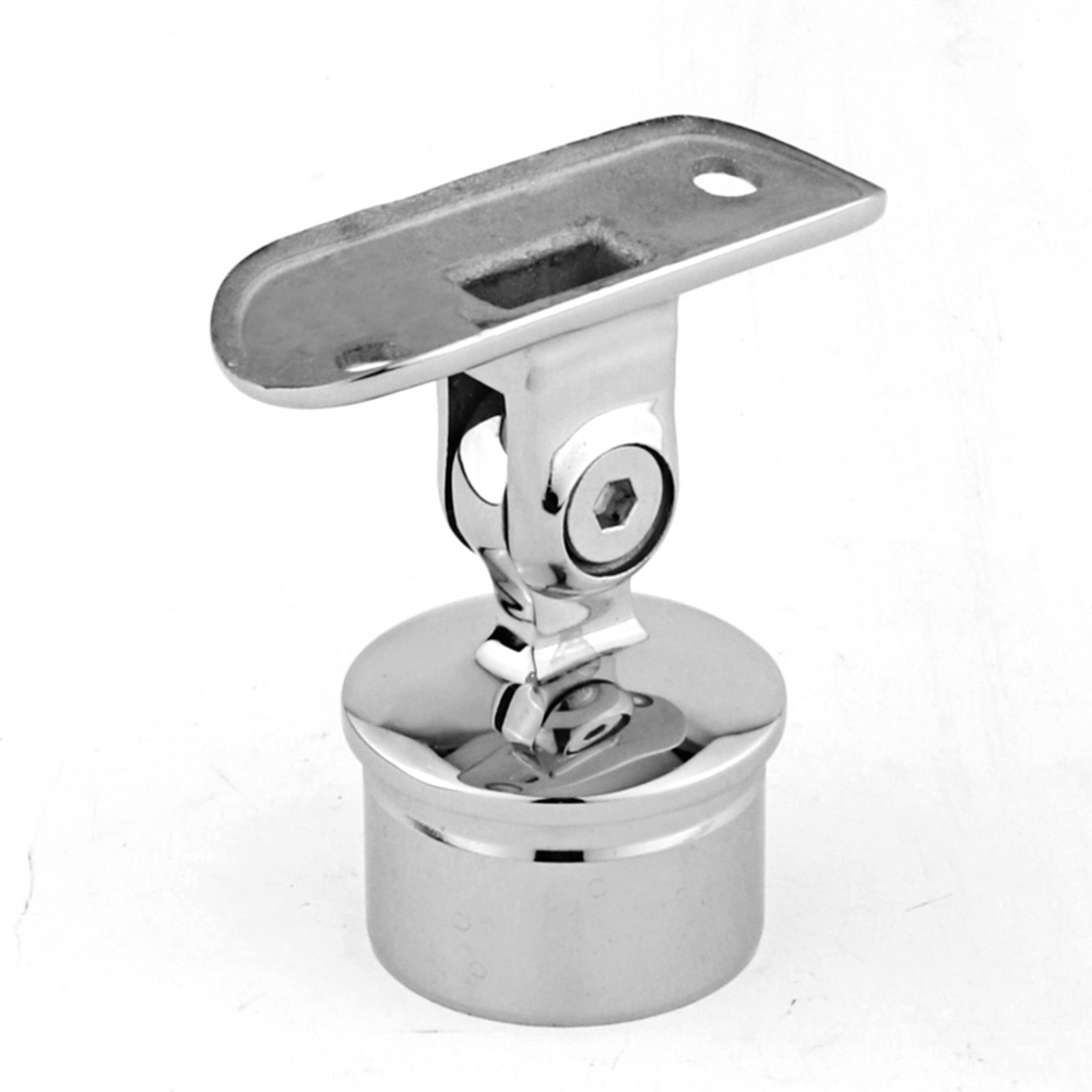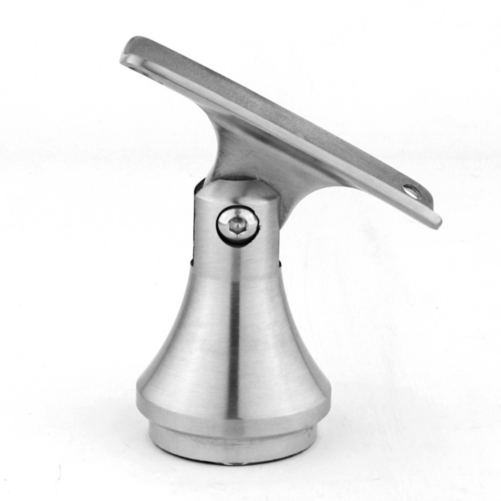 This stainless steel adjustable handrail bracket is designed for mounting handrail tubes on glass railing systems. The bottom base is specially designed to clamp onto the glass panel, providing stable support without the need for drilling. The adjustable top saddle allows the handrail angle to be easily adjusted, making it suitable for both straight and staircase installations. Made from high-quality stainless steel, it offers excellent corrosion resistance, durability, and a clean modern appearance, widely used in glass balustrade and balcony railing systems.
