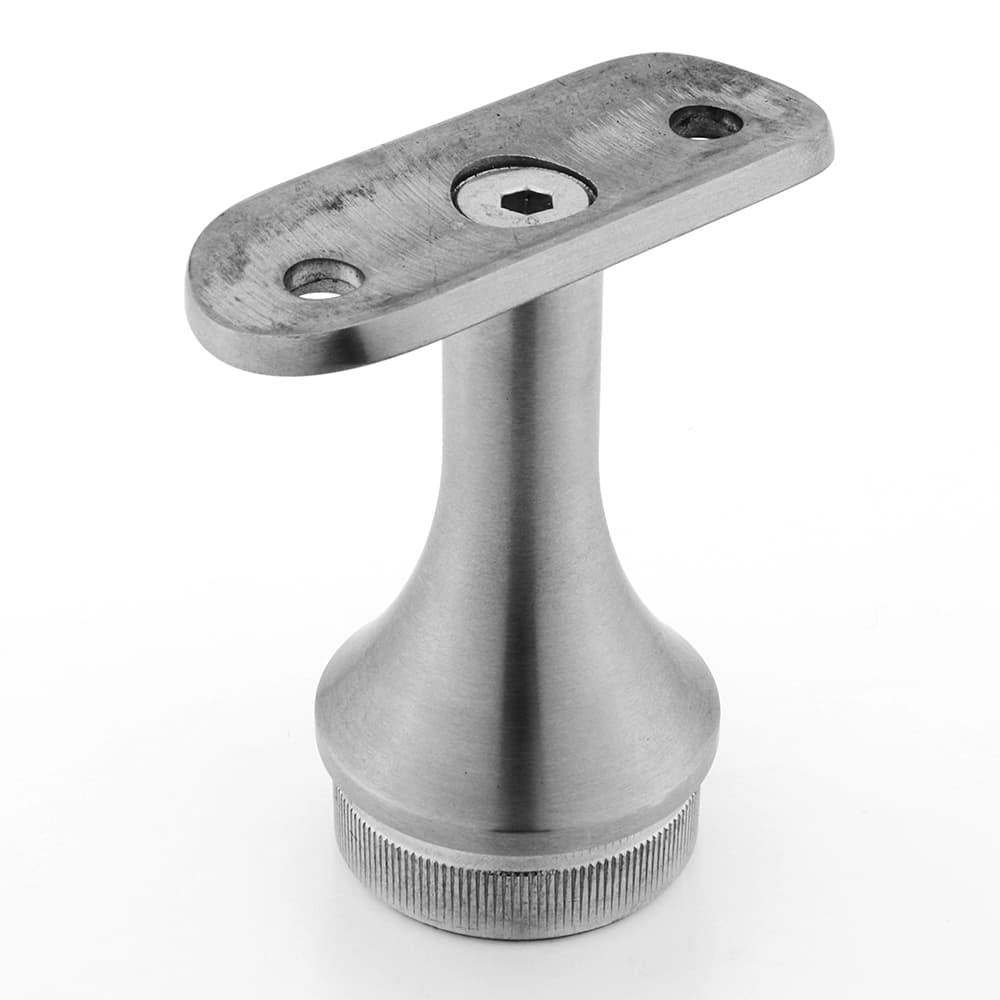 This stainless steel handrail bracket is designed to provide strong and reliable support for stair handrails. Made from high-quality stainless steel, it offers excellent corrosion resistance, durability, and a clean modern appearance. The bracket features a sturdy base plate with screw holes for secure wall installation and a stable saddle that firmly holds the handrail. Its brushed finish enhances both strength and aesthetics, making it suitable for indoor and outdoor applications.