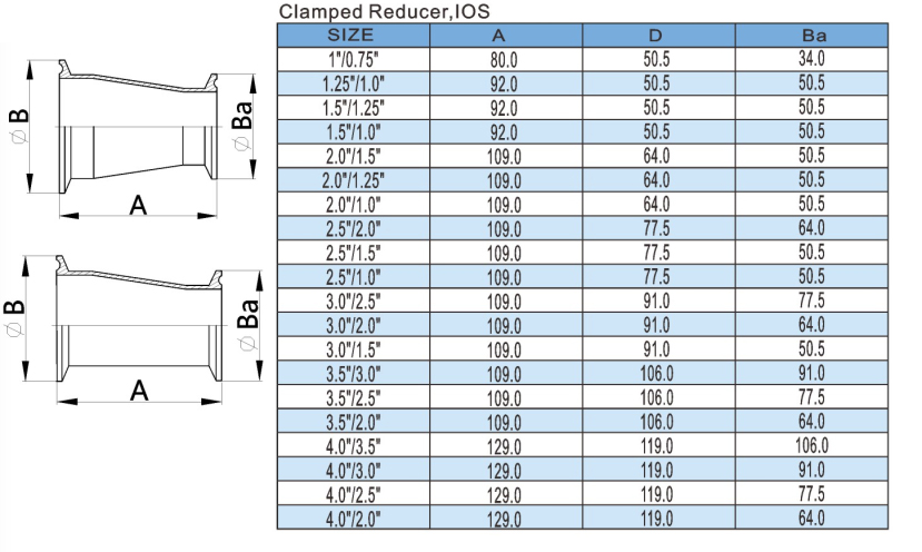 Sanitary reducers are designed with crevice-free, easy-to-clean surfaces, ensuring high hygiene standards. They are commonly available in two types: